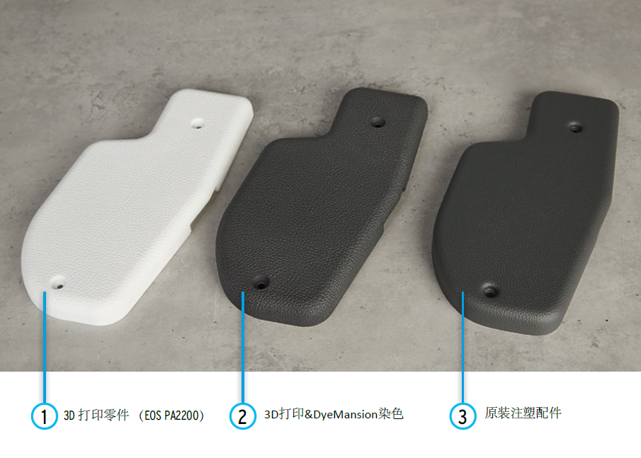 戴姆勒是汽車行業(yè)最早應(yīng)用增材制造的公司之一。在戴姆勒客車的3D打印中心,2016年啟動(dòng)了第一個(gè)3D打印備件項(xiàng)目。得益于3D打印技術(shù)成熟穩(wěn)定的工藝以及DyeMansion的染色技術(shù),該公司現(xiàn)在可以生產(chǎn)表面質(zhì)量可與注塑工藝媲美的3D打印備件。