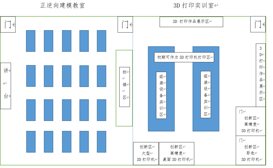 北京某學(xué)院3D打印實(shí)訓(xùn)室 根據(jù)校方要求,我們了解到3D打印實(shí)訓(xùn)室總規(guī)劃面積為200 m2。根據(jù)實(shí)訓(xùn)室的用途,需要采購的設(shè)備,可分為五大區(qū)域 實(shí)訓(xùn)室布局規(guī)劃 根據(jù)校方要求,我們了解到3D打印實(shí)訓(xùn)室總規(guī)劃面積為200 m2。根據(jù)實(shí)訓(xùn)室的用途,需要采購的設(shè)備,可分為五大區(qū)域: 展示區(qū) 三維模型設(shè)計(jì)區(qū) 逆向成型設(shè)計(jì)區(qū) FDM組裝與調(diào)試區(qū) 3D打印創(chuàng)新區(qū) 部分設(shè)備介紹 Artec/EVA 彩色手持三維掃描儀 可提供快速、準(zhǔn)確、肌理豐富的完美3D掃描。掃描過程迅速,色彩鮮亮,分辨率高,幾乎可用于所有場(chǎng)合,且輕便、快捷、多功能 適用于掃描藝術(shù)類等不規(guī)則、大型作品的掃描 FARO?DESIGN SCANARM 高精度三維掃描臂 采用光學(xué)領(lǐng)域中領(lǐng)先的藍(lán)色激光技術(shù),具有極高的掃描速度,可生成高分辨率點(diǎn)云數(shù)據(jù),無需貼點(diǎn) ?? 適用于掃描工業(yè)類等精密零件掃描 YUNS?Y100組裝打印機(jī) 結(jié)構(gòu)簡(jiǎn)單,是3D打印入門級(jí)設(shè)備,價(jià)格便宜 交由學(xué)生拆裝,了解設(shè)備結(jié)構(gòu),學(xué)習(xí)3D打印成型原理 YUNS Y300桌面FDM打印機(jī) 打印尺寸大,成型速度快,適合中小批量打印 可批量打印學(xué)生創(chuàng)意作品 UNIZ桌面機(jī) DLP樹脂打印,大成型尺寸,高精度打印、高表面質(zhì)量、全自動(dòng)支撐生成 可直接打印學(xué)生畢業(yè)設(shè)計(jì)等高精度模型 Ultra?3SP 全新的3SP?(掃描、旋轉(zhuǎn)、選擇性光固化)技術(shù),從STL文件快速精準(zhǔn)地打印輸出。使用多腔二極管激光器的操作成本低;最少的材料損耗降低成本。較大的成型空間 工業(yè)級(jí)精度,可直接生產(chǎn)出誤差內(nèi)的成型零件 Objet260 樹脂噴射彩色3D打印機(jī),可使用一系列多種材料組件(包括剛性、柔性、透明和耐用組件)創(chuàng)建顏色鮮亮的原型 色彩豐富,成品無需上色 最終結(jié)果 3D打印實(shí)驗(yàn)室功能實(shí)現(xiàn): 設(shè)計(jì)可以在較短的時(shí)間很快實(shí)現(xiàn)并得到驗(yàn)證及完善設(shè)計(jì),充分發(fā)揮設(shè)計(jì)創(chuàng)造力; 結(jié)合3D打印實(shí)驗(yàn)室配置的設(shè)備,可充分有效的將自身設(shè)計(jì)的物品制作出來,創(chuàng)造產(chǎn)品真實(shí)呈現(xiàn)給人們; 基于空間內(nèi)的設(shè)備設(shè)施,可用于創(chuàng)客體驗(yàn)、培訓(xùn)、競(jìng)賽、技術(shù)交流等; 整個(gè)制作過程在3D打印實(shí)驗(yàn)室內(nèi)完成,可用于教學(xué),提升人員自身技能及拓寬生產(chǎn)制造思路。 更多詳情請(qǐng)點(diǎn)擊——教育科研 上一頁 下一頁