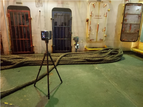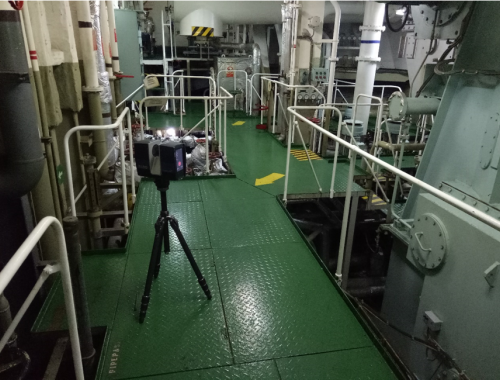 新加坡貨輪掃描現(xiàn)場,利用三維激光掃描儀對貨輪復雜結(jié)構(gòu)進行3D掃描