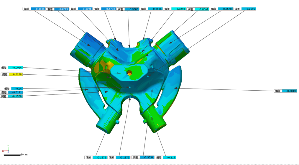 原始設(shè)計(jì)模型與掃描數(shù)據(jù)進(jìn)行3D比較: