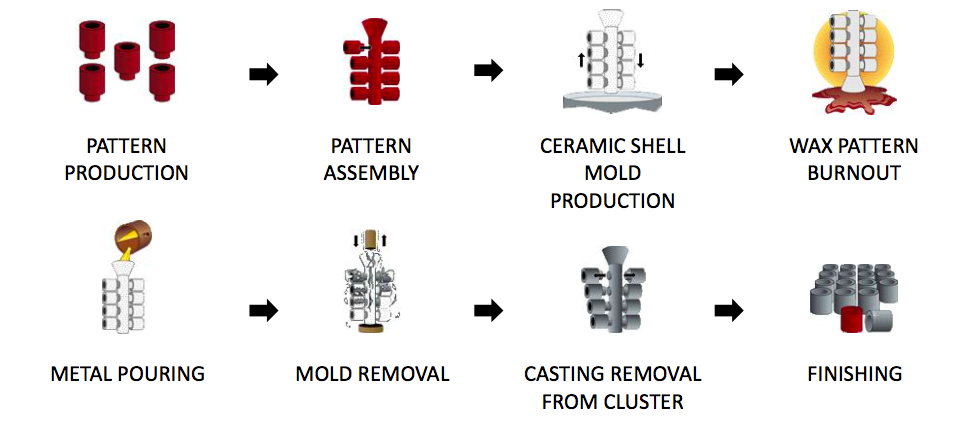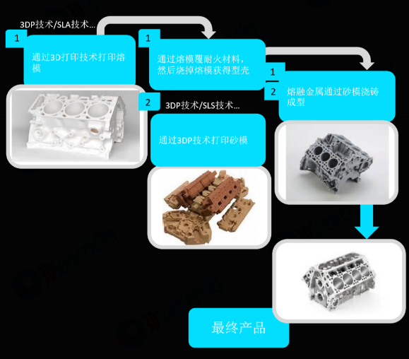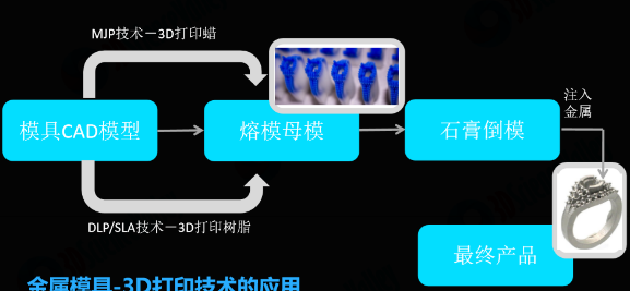 獲取三維數(shù)據(jù)(或三維掃描)——3D打印蠟模(——手工制模)——種蠟樹——石膏制?!喑檎婵铡姹菏唷劢饾茶T——剝離石膏?!獩_洗、酸洗、清洗(——稱重)——修毛坯,拋光等后處理——產(chǎn)品——檢測