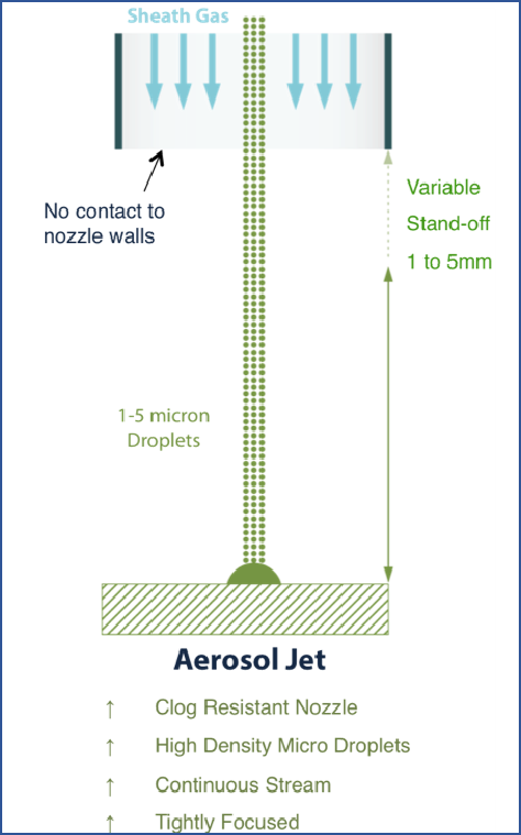 Optomec 是Aerosol Jet 氣溶膠噴射技術(shù)的擁有者。氣溶膠噴射系統(tǒng)使用新的技術(shù), 能夠在大容量和多種使用模式下打印微米級電子產(chǎn)品,包括在2D或3D表面上打印電路或組件。