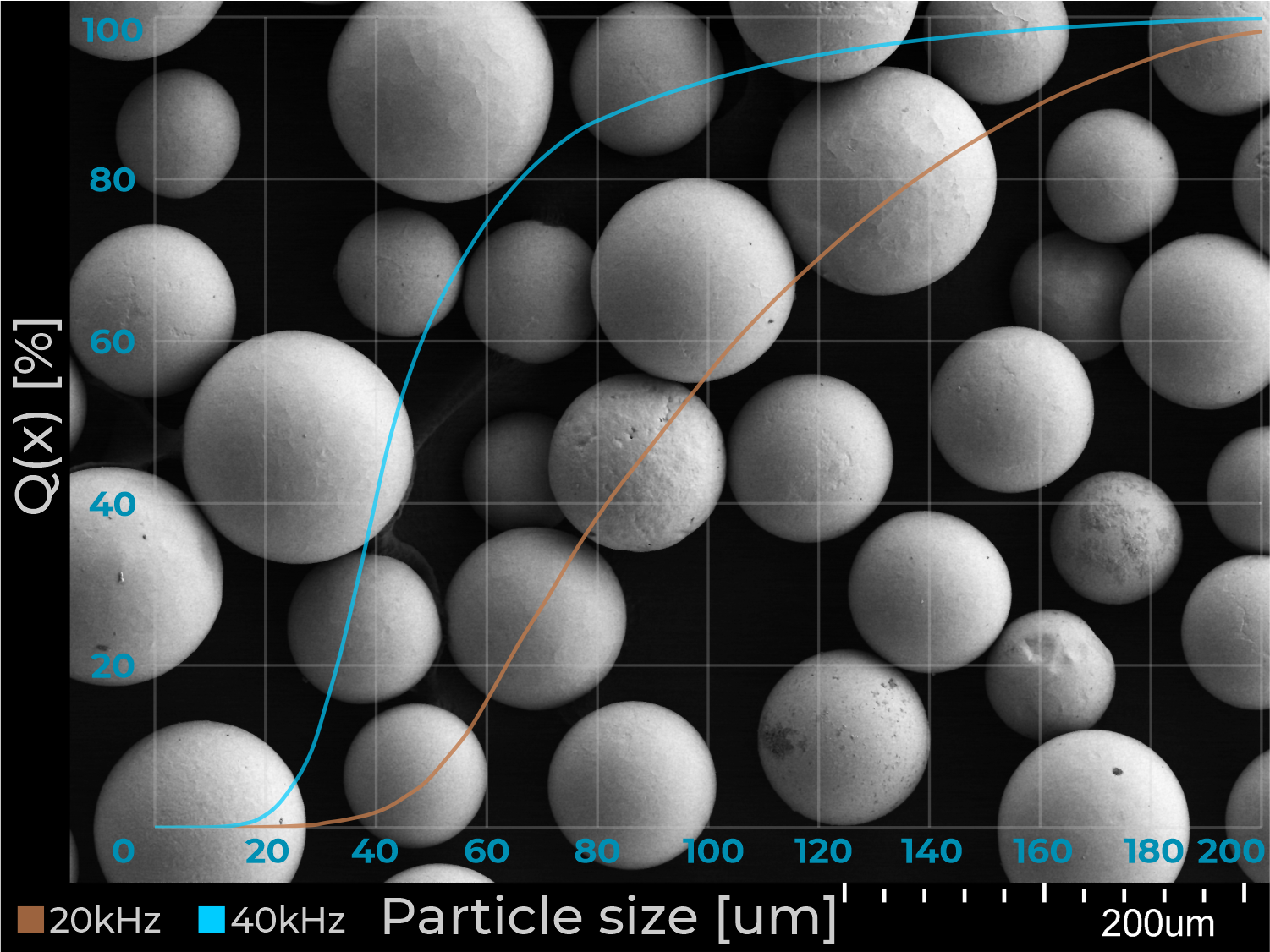 使用rePowder,您可以生產(chǎn)出具有優(yōu)異流動(dòng)性的細(xì)粉末–非常適合添加劑制造和其他粉末冶金工藝。根據(jù)所選頻率d50的粉末范圍:
