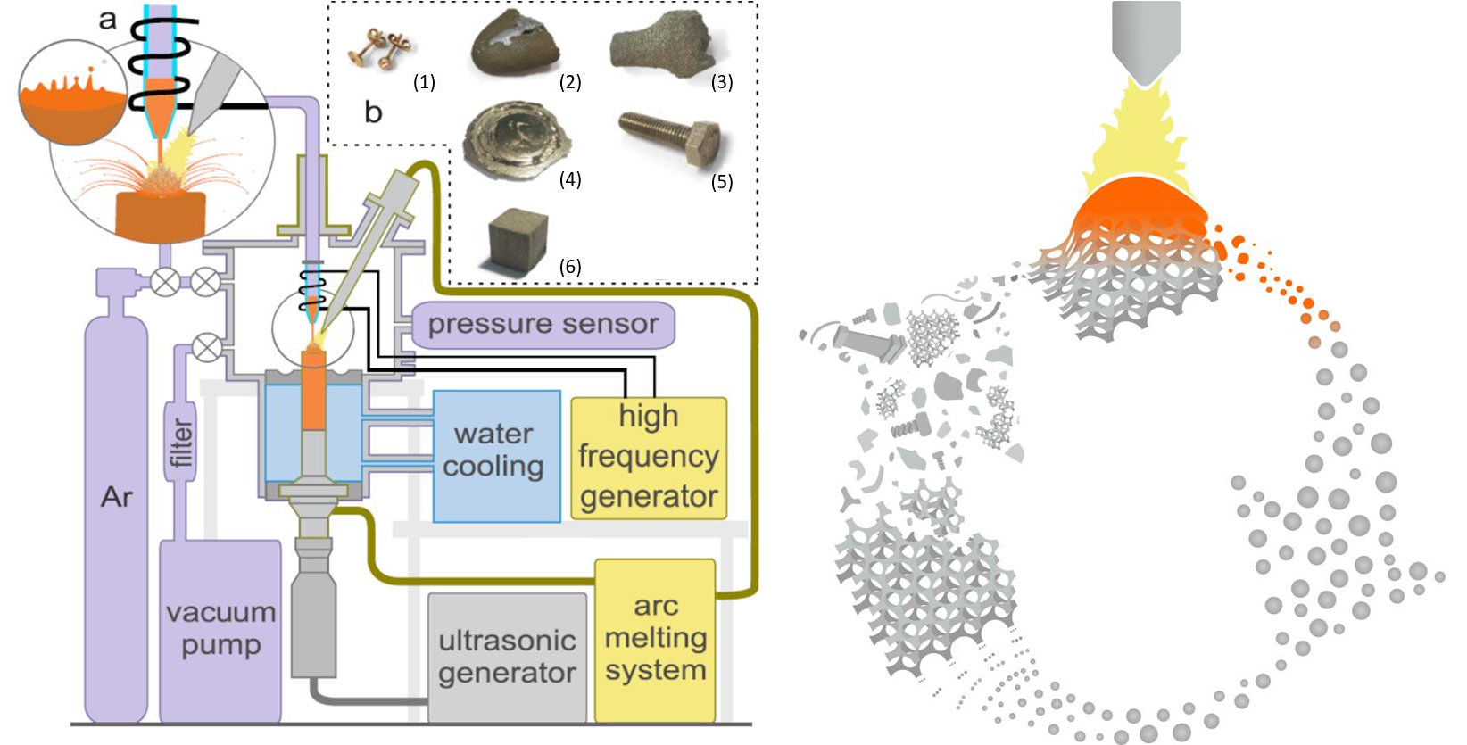 對于感應(yīng)霧化和基于等離子體的霧化,該過程都在惰性氣體(通常是氬氣)中進(jìn)行。根據(jù)研究目的,加入反應(yīng)氣體也可以獲得殼芯顆粒。使用感應(yīng)熔煉,該工藝也可以在真空中進(jìn)行。