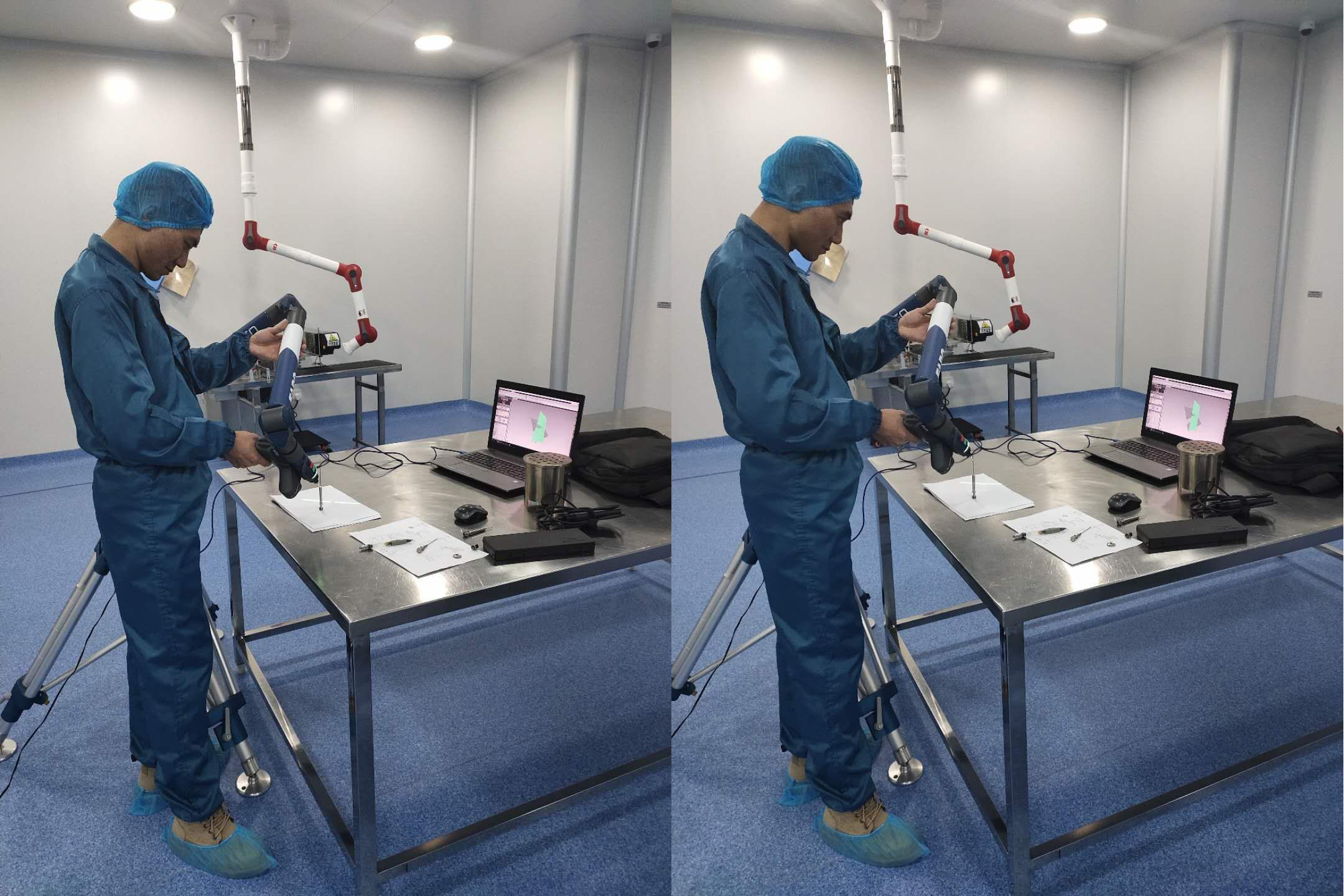 本次項(xiàng)目客戶為某制藥廠,需要對(duì)針頭、支架、接頭等醫(yī)療器械進(jìn)行3D掃描和逆向建模,現(xiàn)場(chǎng)掃描工作在無(wú)塵實(shí)驗(yàn)室中進(jìn)行。