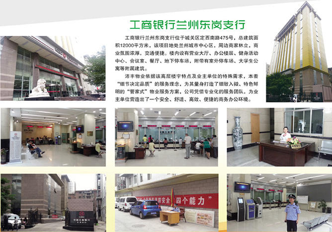 工商銀行蘭州東崗支行位于城關(guān)區(qū)定西南路475號(hào),總建筑面積12000m2,該項(xiàng)目地處蘭州城市中心區(qū),周邊商家林立,商業(yè)氛圍濃厚,交通便捷。樓內(nèi)設(shè)有營(yíng)業(yè)大廳、辦公樓層、健身活動(dòng)中心、會(huì)議室、餐廳、地下停車場(chǎng),附帶有室外停車場(chǎng)、大學(xué)生公寓等附屬建筑。