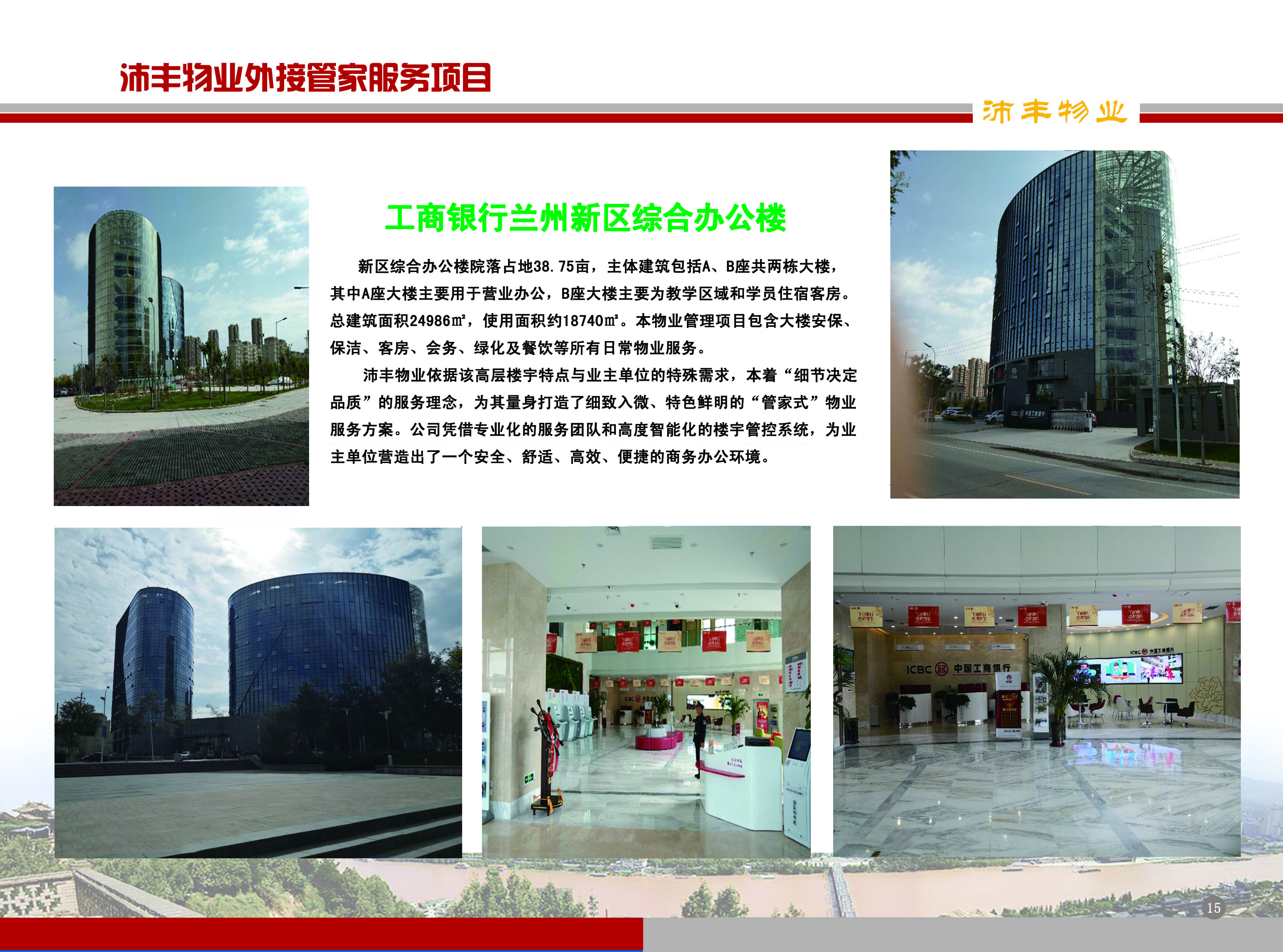 新區(qū)綜合辦公樓院落占地38.75畝,主體建筑包括A、B座共兩棟大樓,其中A座大樓主要用于營(yíng)業(yè)辦公,B座大樓主要為教學(xué)區(qū)域和學(xué)員住宿客房??偨ㄖ娣e24986㎡,使用面積約18740㎡。本物業(yè)管理項(xiàng)目包含大樓安保、保潔、客房、會(huì)務(wù)、綠化及餐飲等所有日常物業(yè)服務(wù)。