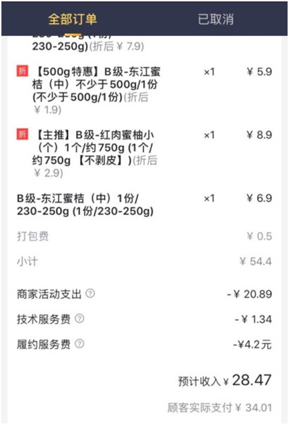 百果園店長某單營收情況
